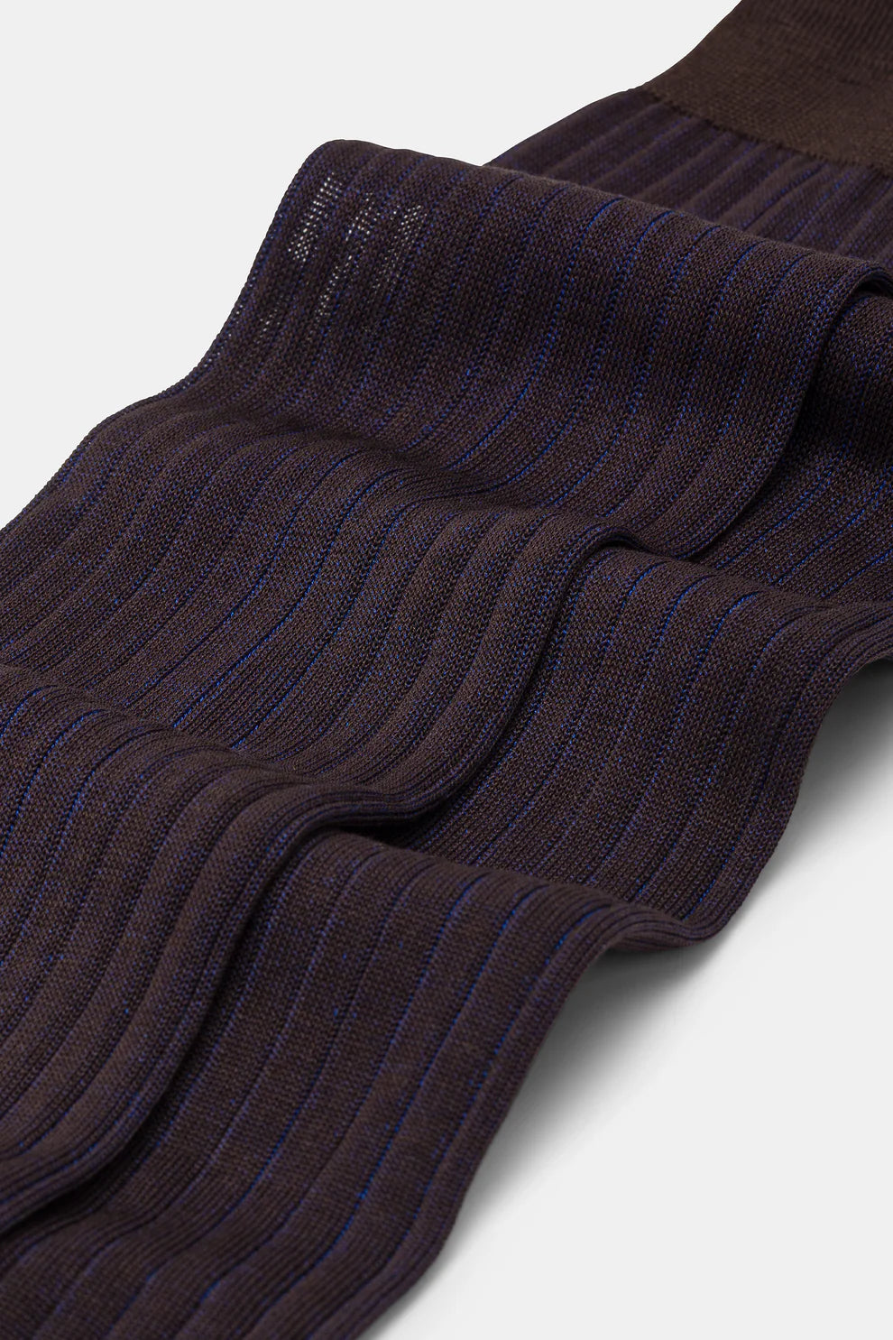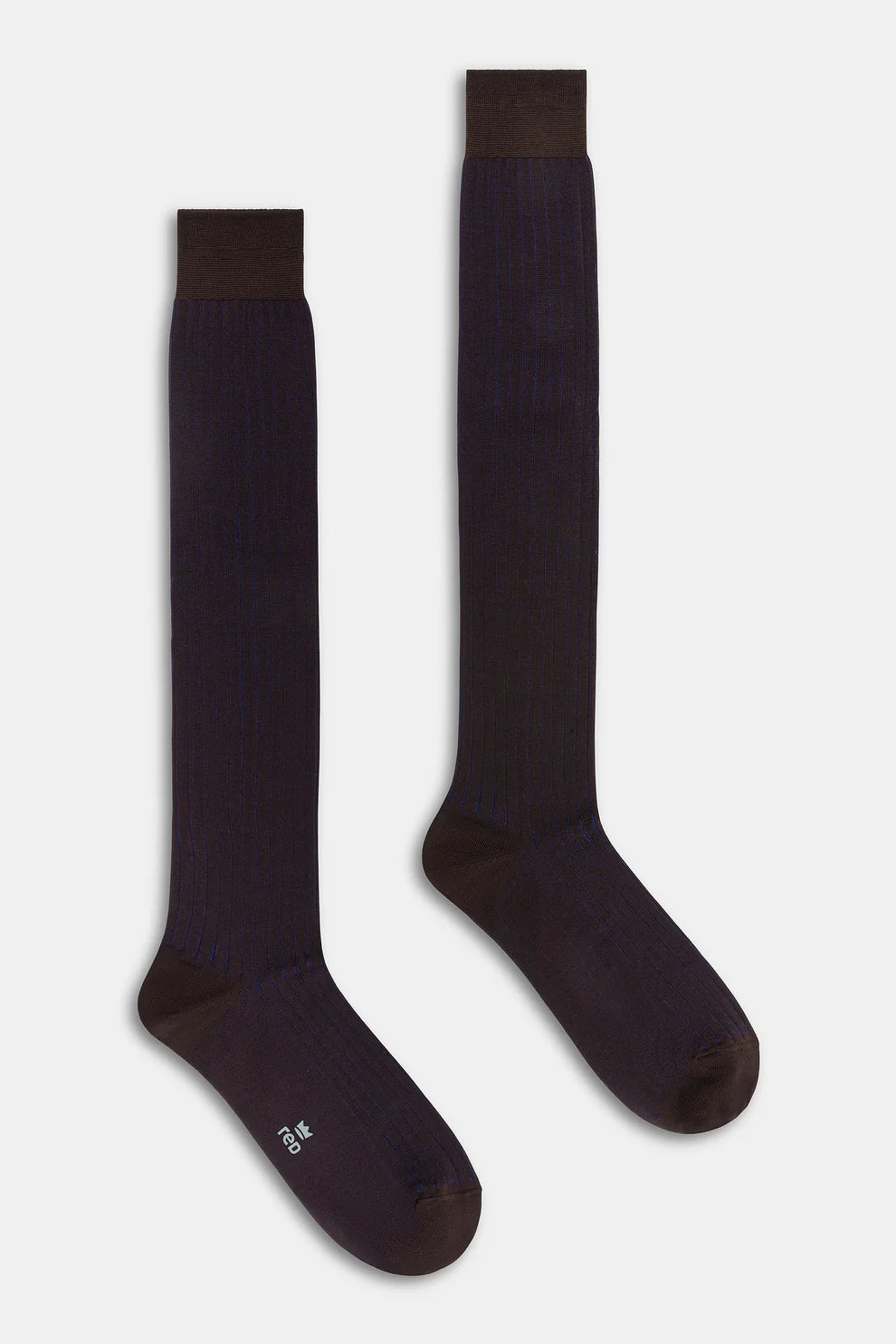 Calza lunga uomo 100% cotone a coste, in una raffinata lavorazione Vanisé con colori a contrasto per apparire impeccabile in ogni occasione.