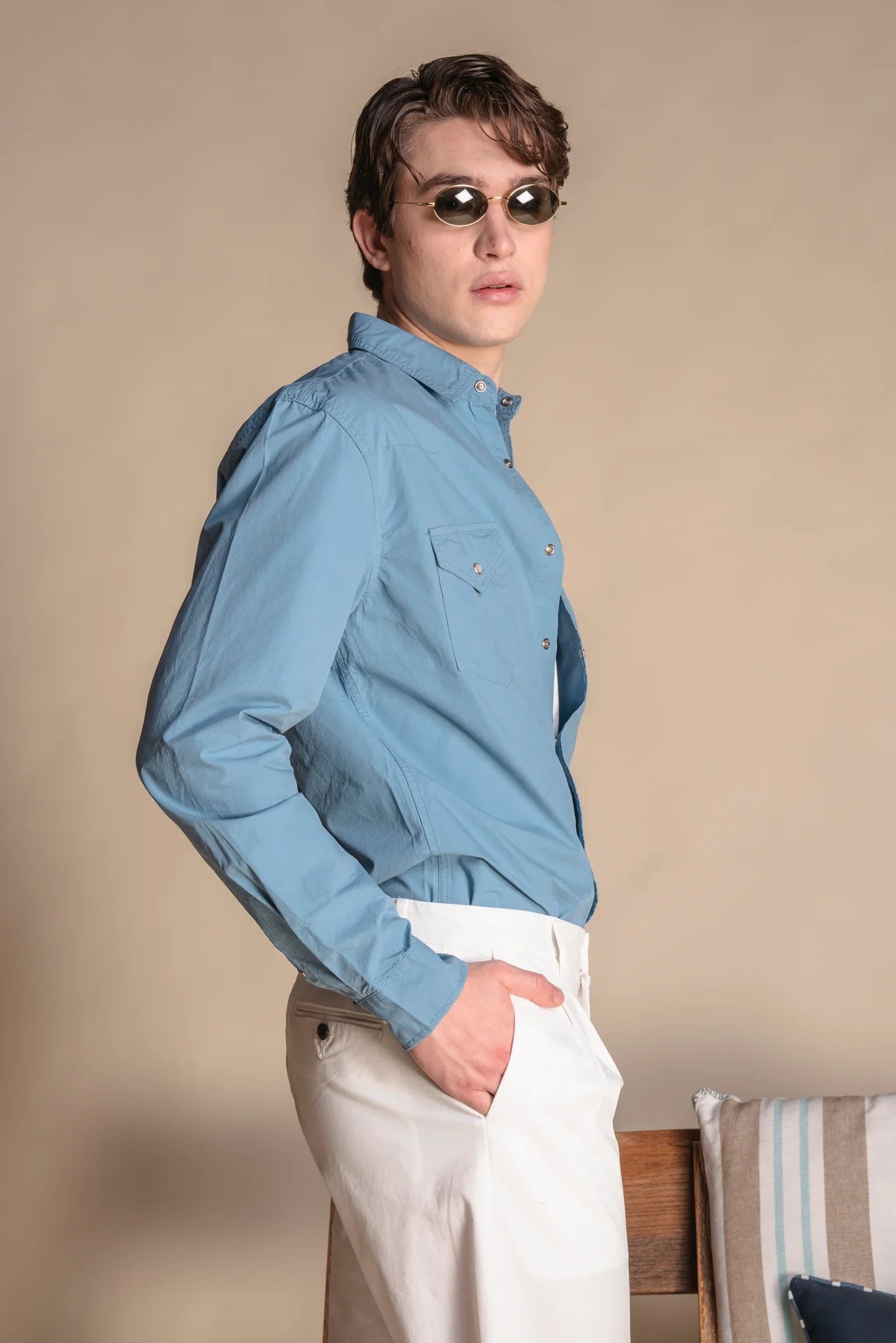 CAMICIA TWILL IN TAGLIO WESTERN INDAGO