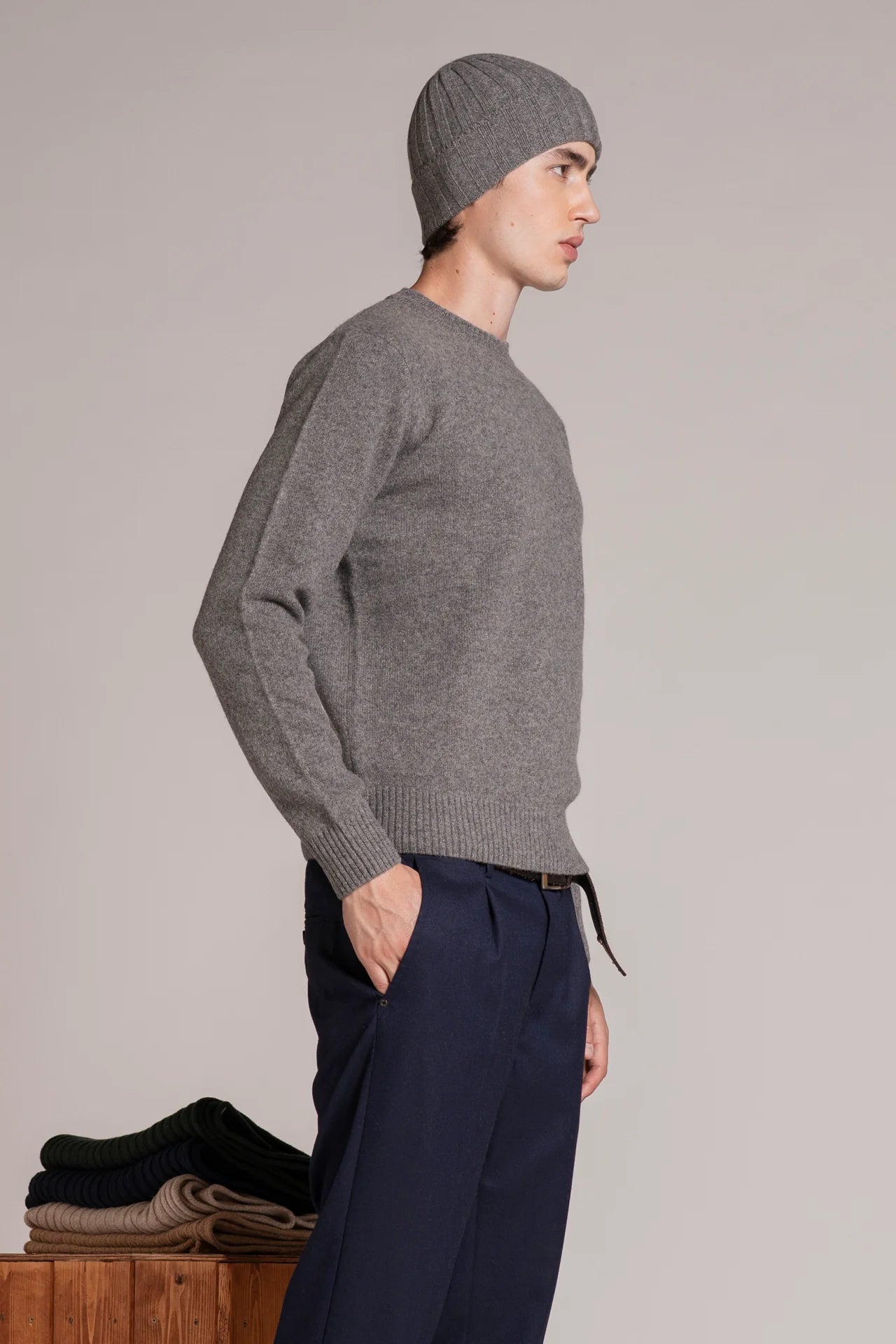 CHARLIE SWEATER IN LAMBSWOOL GREY MELANGE