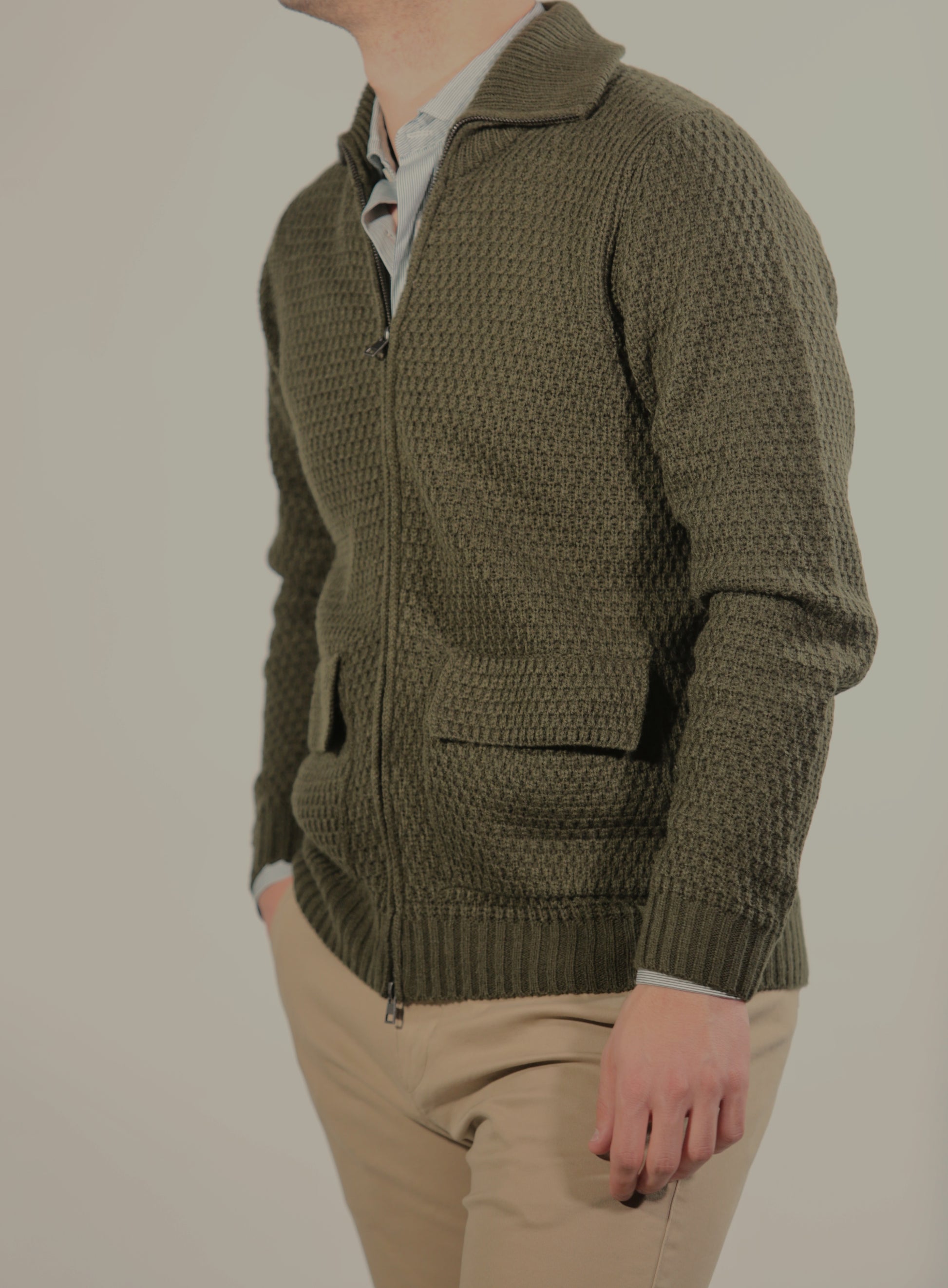ERICK GIUBBINO FULL ZIP IN MERINOS GREEN