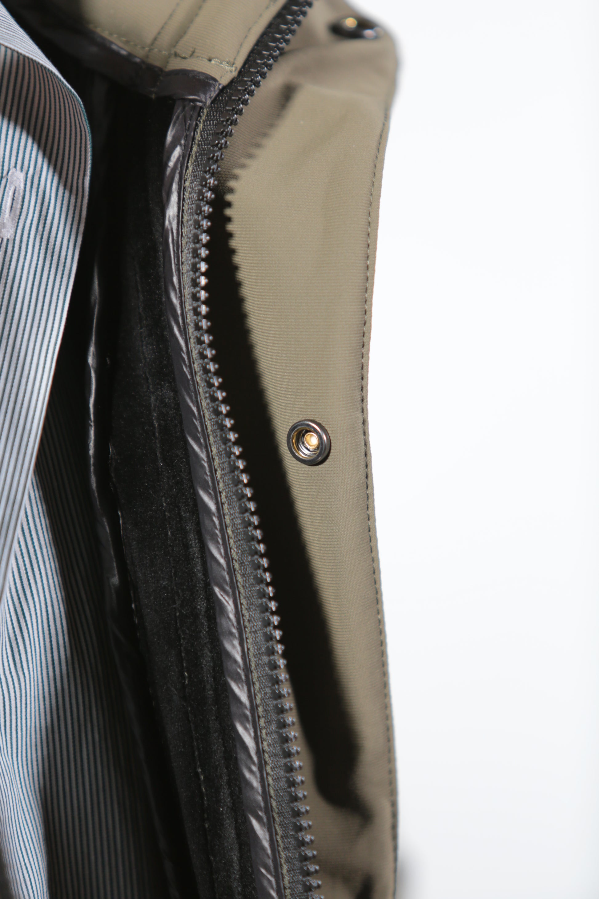 Field jacket in tessuto tecnico con cappuccio nascosto, fodera in pile all'interno, unisce funzionalità e stile urbano per un capo versatile e raffinato.