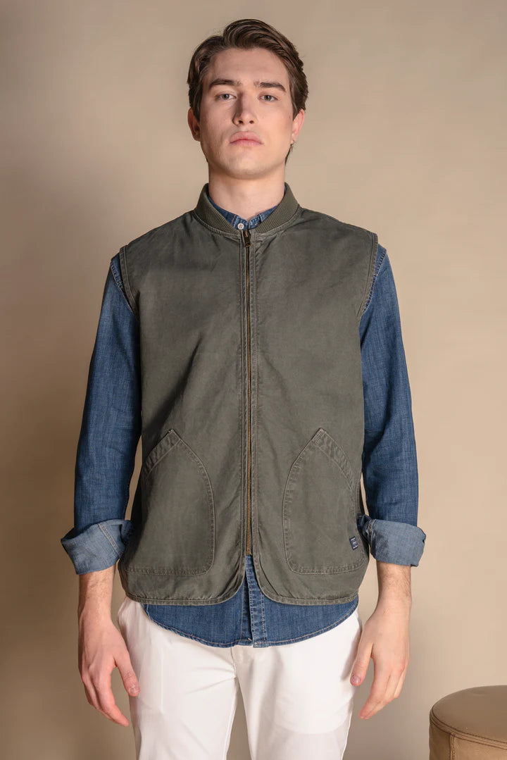 Gilet con zip in tessuto canvas con colletto a costina è un capo d'abbigliamento pratico e resistente, perfetto per un look casual ma curato. Il canvas è un tessuto robusto e durevole, spesso in cotone o misto sintetico, ideale per garantire resistenza all'usura. La zip frontale offre praticità, permettendo di indossarlo e rimuoverlo facilmente. Perfetto per essere abbinato a jeans e maglie leggeri nelle mezze stagioni o come strato extra sopra una felpa nelle giornate più fresche.