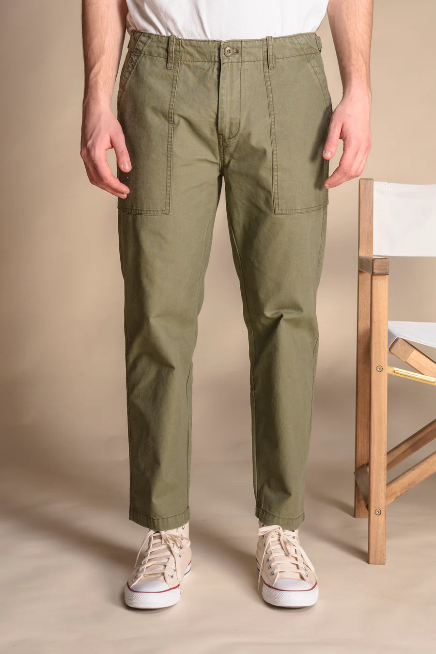Il modello fatigue è spesso caratterizzato da tasche frontali applicate, che richiamano un design utilitario e pratico, ideale per chi cerca un mix di stile e funzionalità. Questi pantaloni sono perfetti per un look casual, ma con una marcia in più grazie al loro aspetto robusto e alla versatilità.